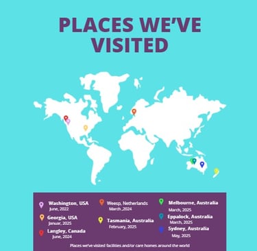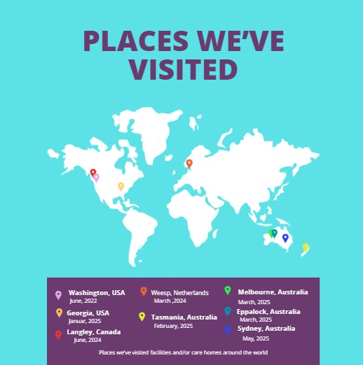 We have visited more than 30 facilities in 8 states spread across 4 countries. We've witnessed how environment can change how someone living with dementia is treated and how environment can even impact how severe someone's dementia is (or appears).